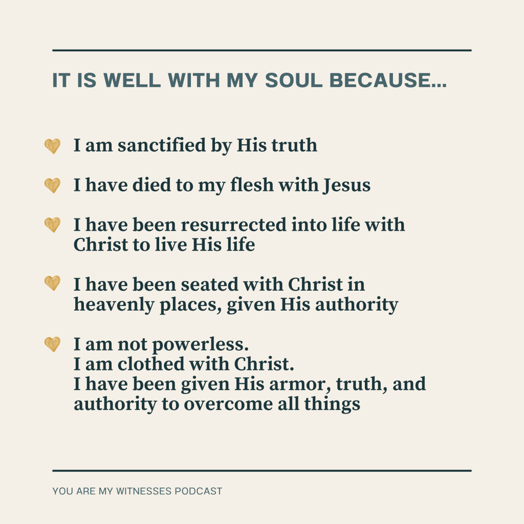 Friend, even when everything around you is shaking, Christ in you is the unshakable hope of glory. The rescue may not look like immediate relief. Sometimes it looks like transformation in the fire. But you are not powerless. You are not alone. Jesus lives in you, and He’s given you authority to overcome. Declare this daily: “It is well with my soul.” Also, click the button below to grab your free daily declarations pdf. This is great for you to print off and stick to your bathroom mirror, inside your car, or wherever you need a reminder.