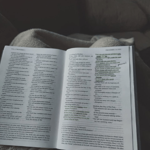 Every morning I slip into the basement with a warm cup of tea, my study Bible, a pen, a highlighter, and a journal.